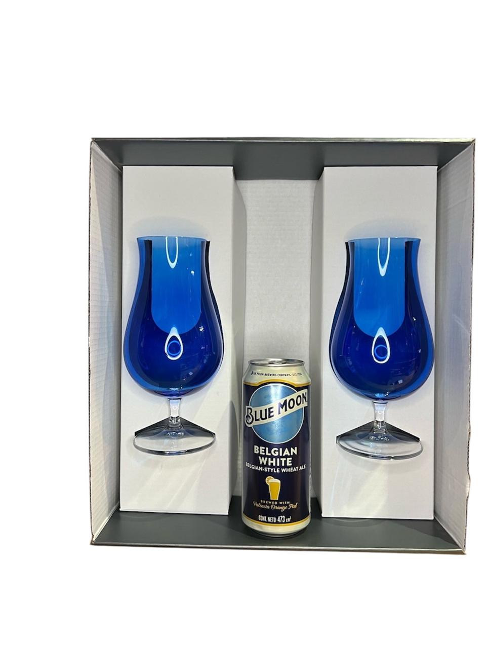 ESTUCHERIA DE ALTA CALIDAD CON 2 COPONES AZULES DE CRISTAL DE 630CC